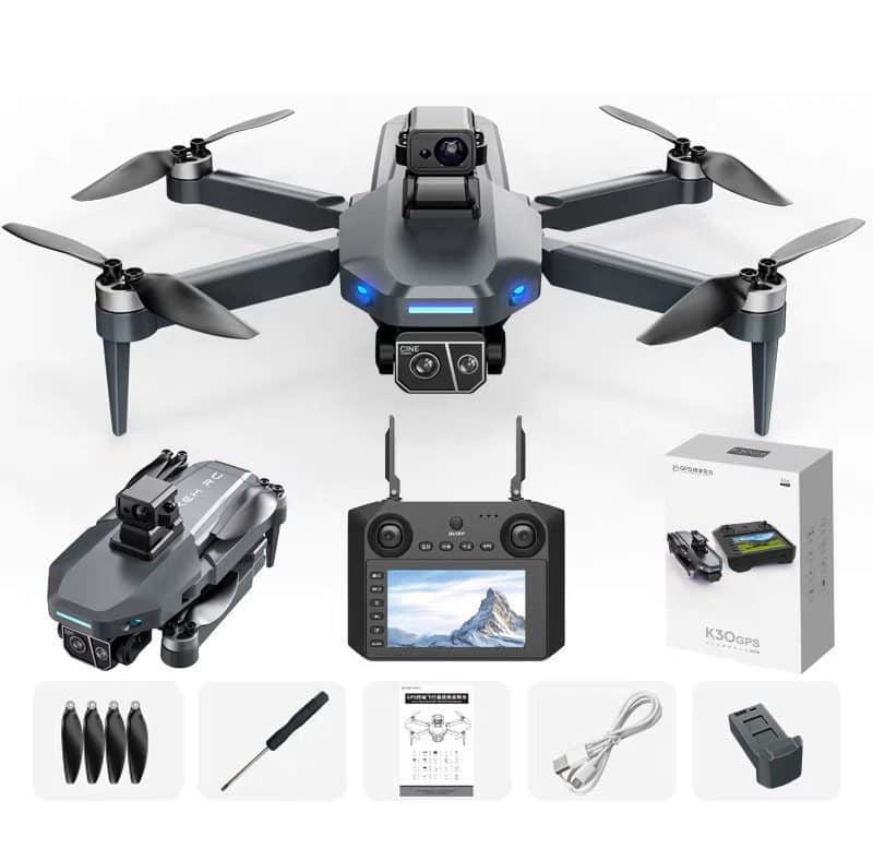 Дрон K30 GPS оснащен 4,5-дюймовым HD-экраном для удаленного мониторинга в режиме реального времени благодаря стабильной передаче данных по сети 5G. Он использует двойной режим позиционирования GPS и оптического потока для точного зависания и стабильного полета. Оснащенный комплексными протоколами безопасности, он включает в себя функции 360° лазерного обхода препятствий и интеллектуального автоматического возврата, активируемые при превышении расстояния, низком заряде батареи или потере сигнала, а также функцию ручного возврата одним нажатием кнопки. Благодаря профессиональным автоматизированным режимам, таким как «Следование» и «Точка интереса», он обеспечивает надежную работу как для аэрофотосъемки, так и для безопасного и удобного управления.