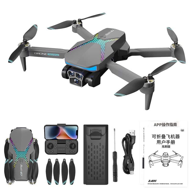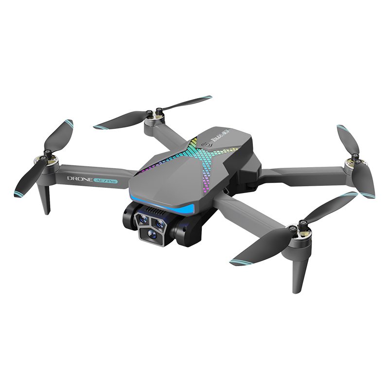 Дрон AE7 — это многофункциональный квадрокоптер, отличающийся яркой радужной подсветкой и усовершенствованной системой из трех камер. Он разработан с учетом требований стабильности, использует оптический поток для точного полета в помещении и оснащен интеллектуальной системой обхода препятствий для повышения безопасности. Его электрически регулируемая основная камера в сочетании с переключением между двумя объективами, обеспечивающим 50-кратный зум, обеспечивает исключительную универсальность кадрирования. Интеллектуальные режимы полета, такие как «Следование» и «Путевой пункт», позволяют автоматизировать работу, а жестовая фотография и фильтры красоты помогают создавать креативные снимки. Разработанный для простоты использования, он оснащен функцией взлета/посадки в один клик и режимом без головы, что делает его интуитивным и визуально привлекательным выбором как для начинающих, так и для опытных пилотов.