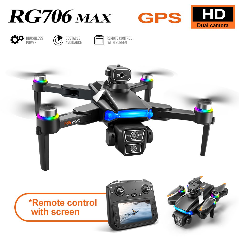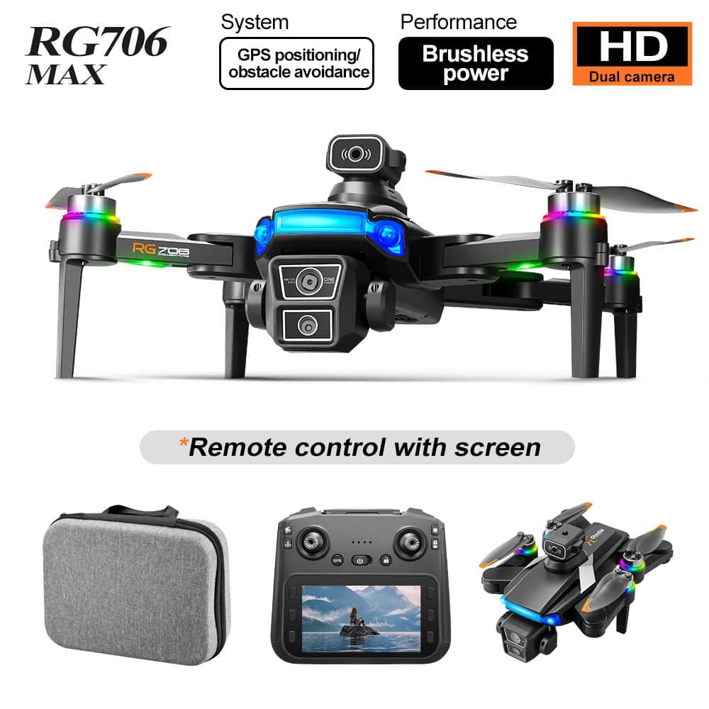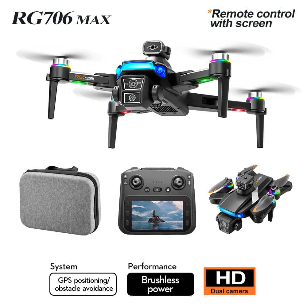 Дрон RG706MAX gps оснащен передовыми функциями, включая камеру 4K HD и инновационный экран дистанционного управления 4,5 HD, что обеспечивает высокое качество изображения и удобство в эксплуатации. Он предлагает передачу изображения в реальном времени по 5G, а также различные функции GPS, такие как интеллектуальное следование, парение в воздухе и съемка фотографий с помощью жестов. Двойная система позиционирования GPS и оптического потока повышает точность навигации, а функция обхода препятствий на 360° обеспечивает безопасную работу. Дополнительные возможности включают интеллектуальные функции возврата, что делает этот дрон с GPS универсальным выбором для аэрофотосъемки и исследований.