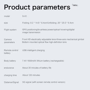 Профессиональный дрон S-X1 с GPS разработан для высококачественной аэрофотосъемки и оснащен 3-осевым подвесом EIS, обеспечивающим стабильную съемку в формате 4K. Его выдающейся особенностью является синхронизированная передача видео в реальном времени на три взаимосвязанных экрана с помощью технологии 5G. Дрон имеет дальность полета 5 км и использует двойное позиционирование с помощью GPS и оптического потока для точной навигации. Интеллектуальные функции включают режимы «Следование», «Окружение» и «Точка интереса», а всестороннюю безопасность обеспечивают лазерное обхождение препятствий и автоматический возврат (низкий заряд батареи/сигнал/расстояние). Эта система обеспечивает совместный и профессиональный опыт полета для требовательных приложений.